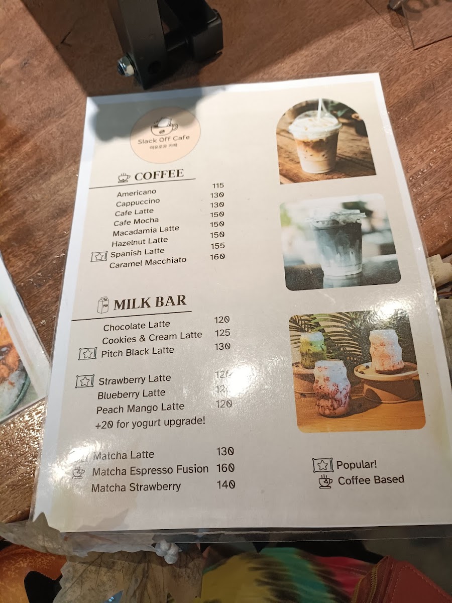 Be sure to also take note of the delightful feedback from our happy visitors. Karla Lee raves about the generous serving sizes and quality of the coffees, including the delicious Biscoff Latte and French pastries like the Pan au Chocolat. Rain elL CA highlights the creamy allure of the Peach Mango Latte, and Jax D V sums it up perfectly by calling it, “Slack Off Cafe, Your Chill Oasis!"